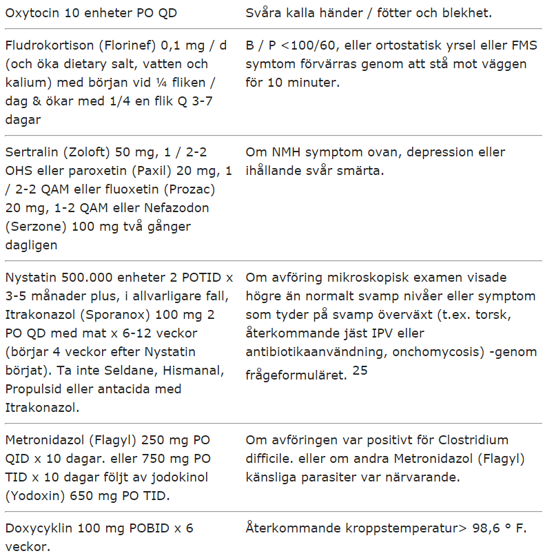 Jacob E. Teitelbaum m fl genomförde en intressant studie redan år 2001. Man gav 38 st CFS-patienter (där vissa även hade Fibromyalgi) individuell behandling efter genomförda prover.