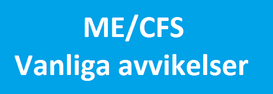 Jag har kortfattat sammanställt vad jag funnit för avvikelser, dels utifrån studier och dels efter omfattande kontakter med många som lider av sjukdomen ME/CFS. Ni får gärna fylla på i kommentarsfältet. Ange gärna källa om ni anser att en majoritet har just denna avvikelse. Jag uppdaterar efterhand.