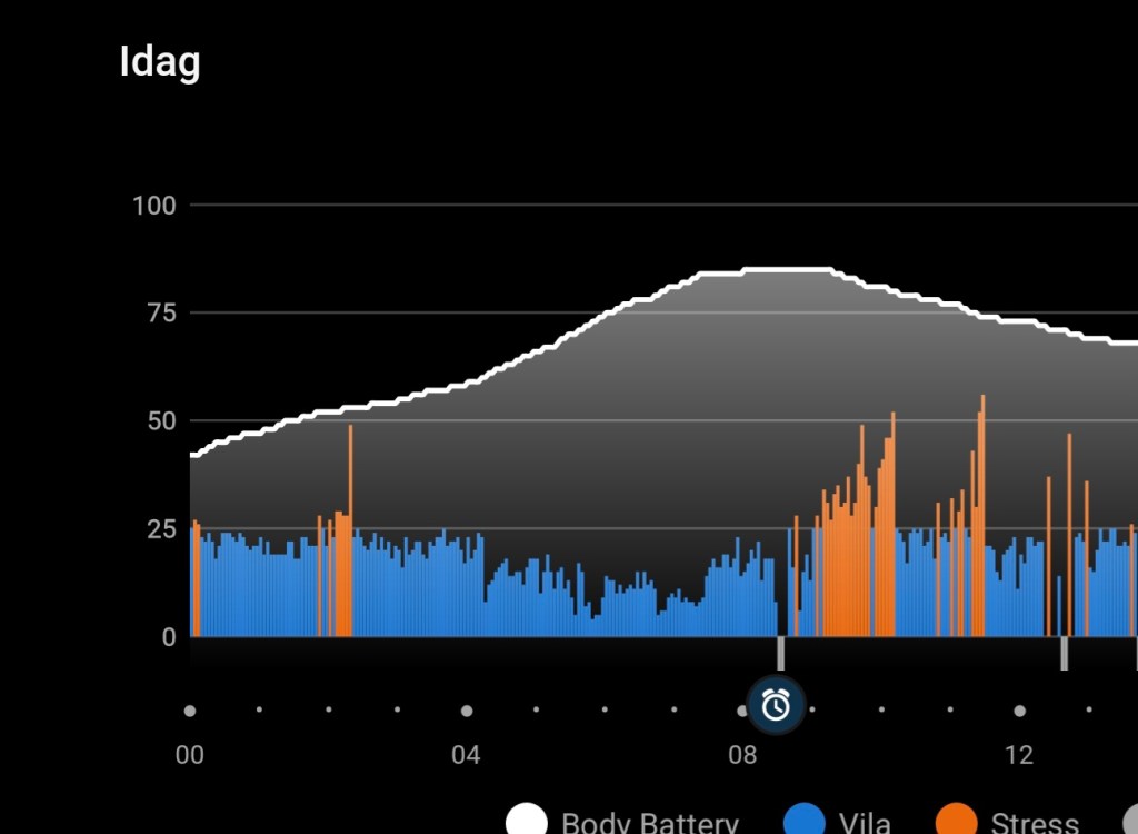 Mitt ‘body battery’ på min aktivitetsklocka (Garmin Forerunner 245) visade en ökning till 53 poäng, jämfört med tidigare max på 41 poäng. Även om onsdagen var hektisk och inkluderade en ”jobbmiddag”, märkte jag att mina stressnivåer ändå sjönk.