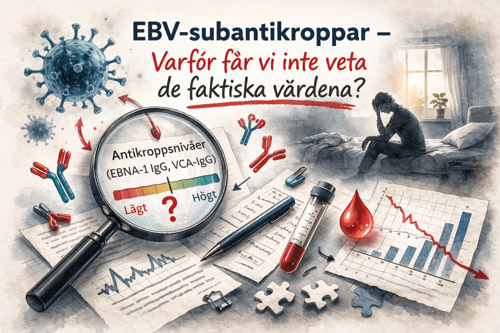 Det finns en publicerad studie i PLOS ONE som visar att upp till 76 % av ME-sjuka har låga nivåer av just dessa subantikroppar – EBNA-1 IgG och VCA-IgG – jämfört med friska kontroller.